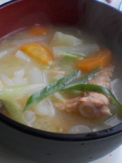 お昼は寿司と鮭のあら汁です(。・ω・)