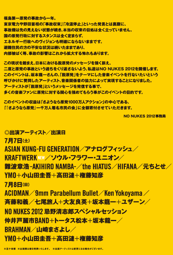 NO NUKES 2012 が開催される。