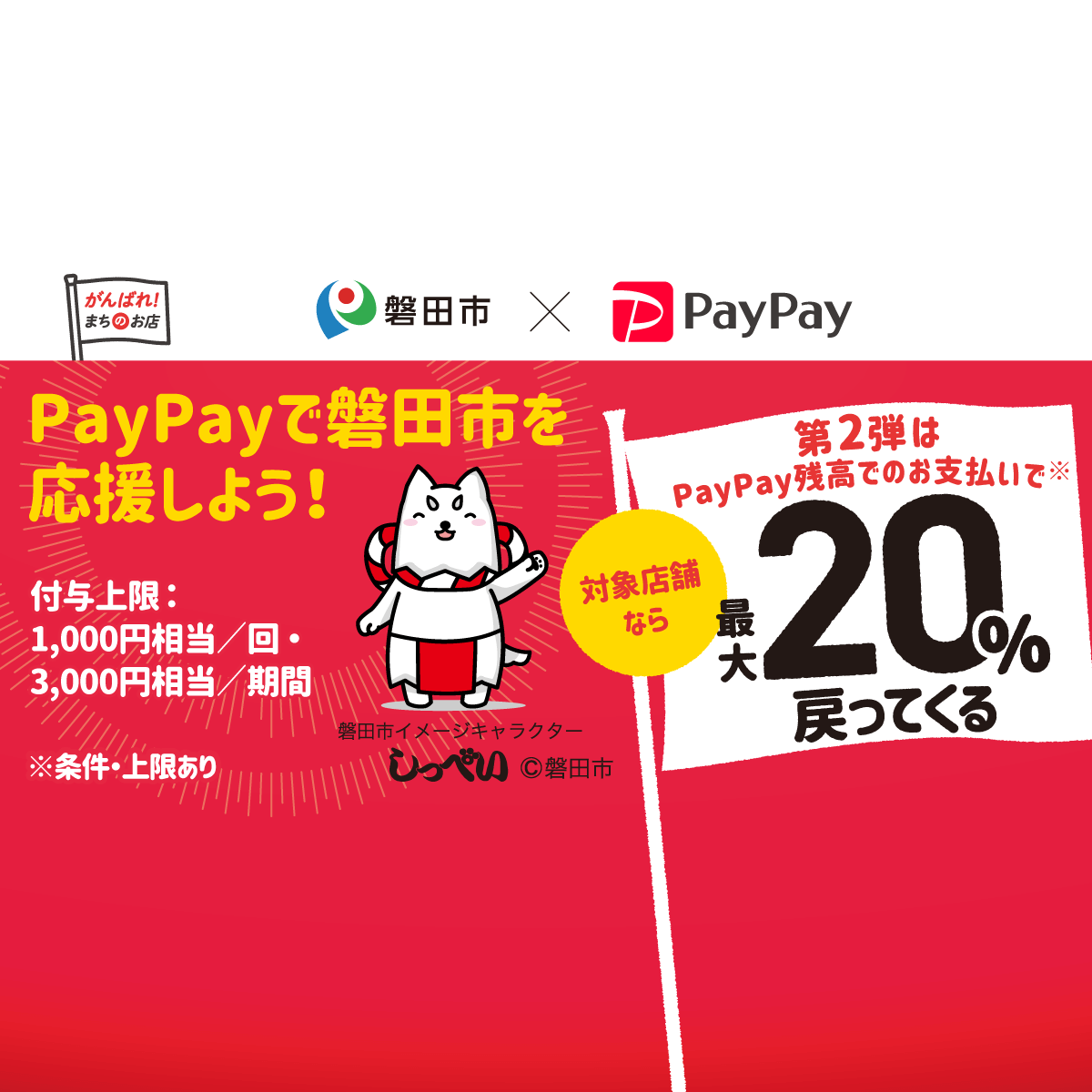 今 隣の市の静岡県磐田市(いわたし)でPayPay払い20%還元キャンペーン中