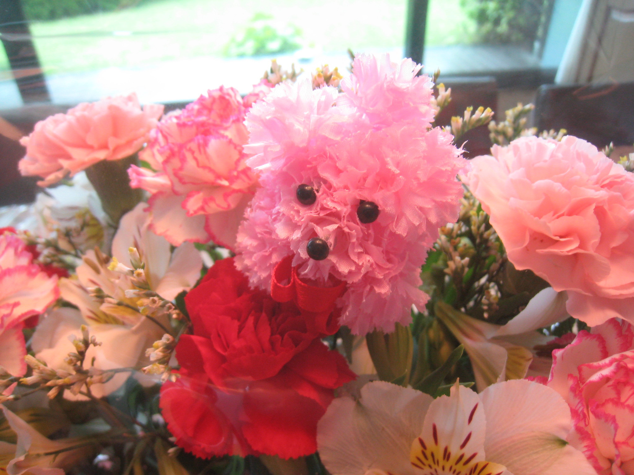 中央にはカーネーションで作ったワンちゃんも!