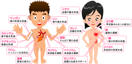 ミネラルは体の調子を整えるはたらきをしますが、体内で合成することができないので外部から摂取する必要があります。