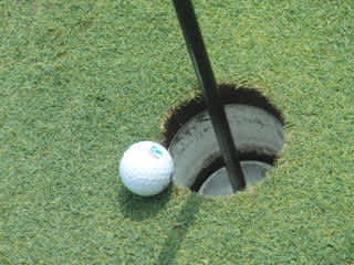 パー5の3オンでカップにかかった状態のケロ吉ボール!!!