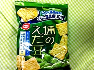 塩味が絶妙な枝豆 ですが 本物の枝豆じゃぁなく お菓子になった枝豆 です(笑) こちら 生地に枝豆が練りこんである おせんべい。 ・・・しかも その枝豆が 茶豆 ですから 豆の味がしっかりしていて めちゃ美味しいっ!!! 塩加減が絶妙 で 普通に食べても美味しいけど お酒のおつまみにも いけちゃう感じ。 やるねぇぃ 亀田製菓 さん