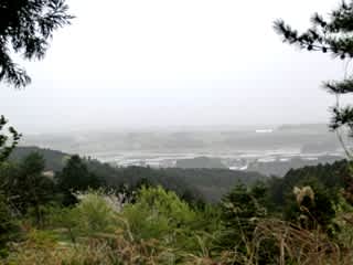 黄砂で霞んだ町並み
