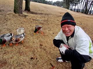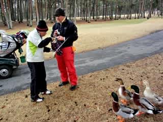 無邪気なおやぢ達♪ 先日ラウンドの 太平洋クラブ益子コースにて カモの餌やりに ラウンド中だということも忘れ没頭する 48歳男性と60歳男性・・・ 早くおくれよぉ~ かわいいぃ~ うれしいぃ~ ちょっとお二人さん 前の組 もう終わってまんがな・・・ さっさとスタンバイしなはれ (byチームカモ)