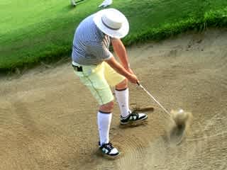 苦手っぽいバンカーショットも