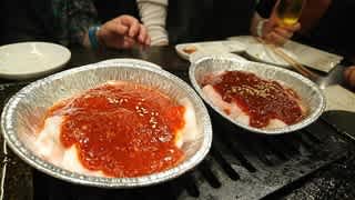 鉄板の上のお肉に砂糖をダイレクトにのせ