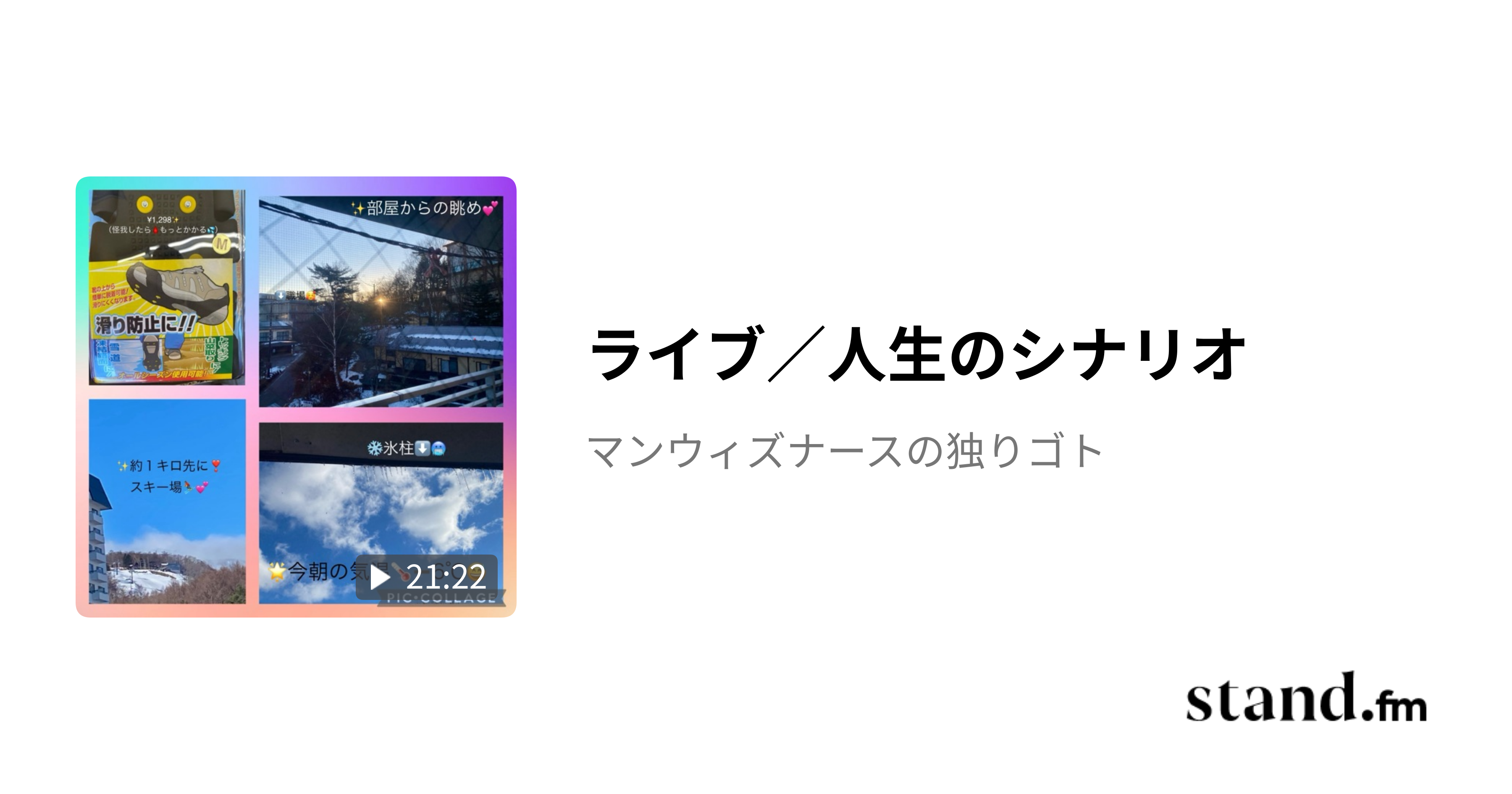 滑稽な人間社会ライブ/人生のシナリオ - マンウィズナースの独りゴト | stand.fm起こる物事✨すべてに意味があり🌈意識の矛先により導かれる 幸せになれる人は、そう「行動」していた人 愛されないシナリオにしていたのは私 ヒロインになりたいって一度も口に出さなかった その「勇気」がなかったからよ 💥思っていても言わなければ叶わない!! 変わりたいと思えば いつでも変われたはず 私のシナリオは、私が描かなきゃ……stand.fm 🌟軽井沢駅にて💕🥹 🌟めちゃめちゃお薦め👍