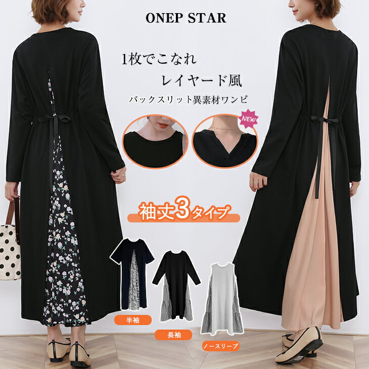 「Vネック新登場」レディース ワンピース ロング丈 半袖 長袖 ノースリーブ ロンTワンピース ワンピ ロング丈 レイヤード風 異素材切替 ウェストリボン付き ラウンドネック Vネック カーキ ピンク フレア ワンピスター楽天市場4,590円${EVENT_LABEL_01_TEXT}