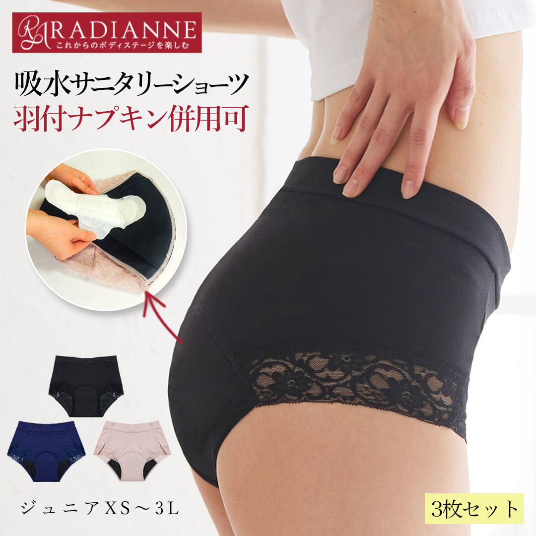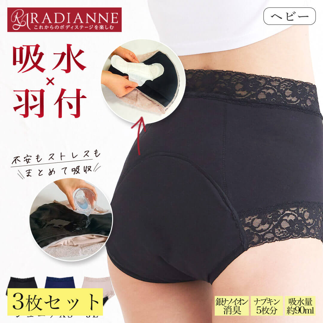 \77%OFF・26(火)01:59迄/吸水 ショーツ サニタリーショーツ フェムフォート 吸水サニタリーショーツ ヘビー 3枚セット 生理用パンツ 吸水型 羽付ナプキン 併用可 ナプキン 5枚分 経済的 フェムテック 多い日 大きいサイズ ジュニア 昼 夜 全5色 全3サイズラディアンヌ楽天市場2,403円${EVENT_LABEL_01_TEXT}