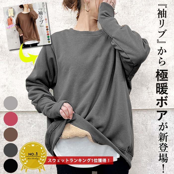 【80%OFF対象→996円!5点買い+クーポンで!】 【楽天1位】トレーナー 裏起毛 レディース 裏ボア 極暖 スウェット 裏毛 大きいサイズ 韓国 リブ長 トップス 長袖 無地 ルームウェア 部屋着 (送料無料)[郵3]^t1040^楽天市場4,980円${EVENT_LABEL_01_TEXT}