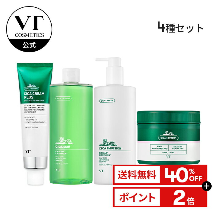 \40%OFF+送料無料/【VT公式】【 大容量 】【 CICA スキンケア 4種 セット 】 ふき取り 化粧水 スキン 乳液 エマルジョン クリーム トナーパッド シートマスク パック シカ ツボクサ 保湿 低刺激 トラブル肌 乾燥 敏感肌 韓国コスメ しっとり うるおい楽天市場5,840円${EVENT_LABEL_01_TEXT}