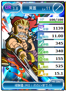 ちなみに黄蓋のスピードを上げることができるスキルは、