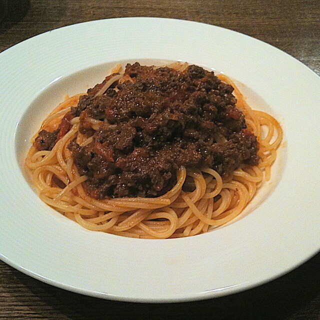 ボロネーゼ、これでもかとかけられたチーズが嬉しい。