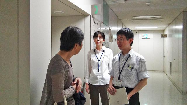 都庁に行ったついでに都教委総務部教育情報課に質問に行きました(写真上)。行ったといっ ても、定例会の開催される30階の廊下は都教委職員と警備員10数名が立ち並び、 執務室の入り口は施錠され、前にも中にも職員が立っているので、用件を伝え呼び出 してもらうしかありません。用件を告げると、A係長ら2人が出てきて、廊下での話 となりました。