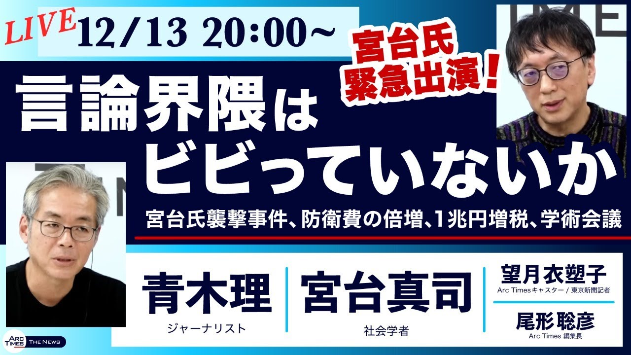 The News ● 宮台氏 緊急出演!言論界隈はビビっていないか 〜宮台氏襲撃事件、防衛費の倍増、1兆円増税、学術会議【宮台真司、青木理】
