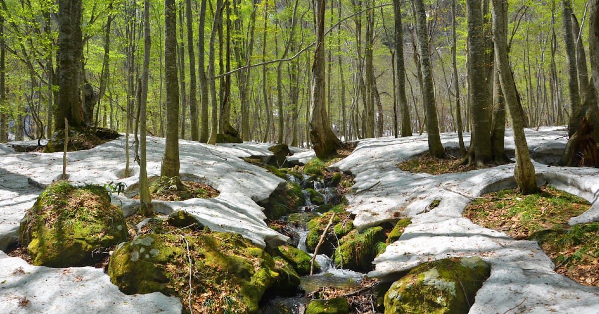 日本海型ブナ林はブナの優占度が高いです。植生はブナを優占種として、ミズナラ・ホオノキ・カエデ類・シナノキ・トチノキ・アスナロなどが混生しています。