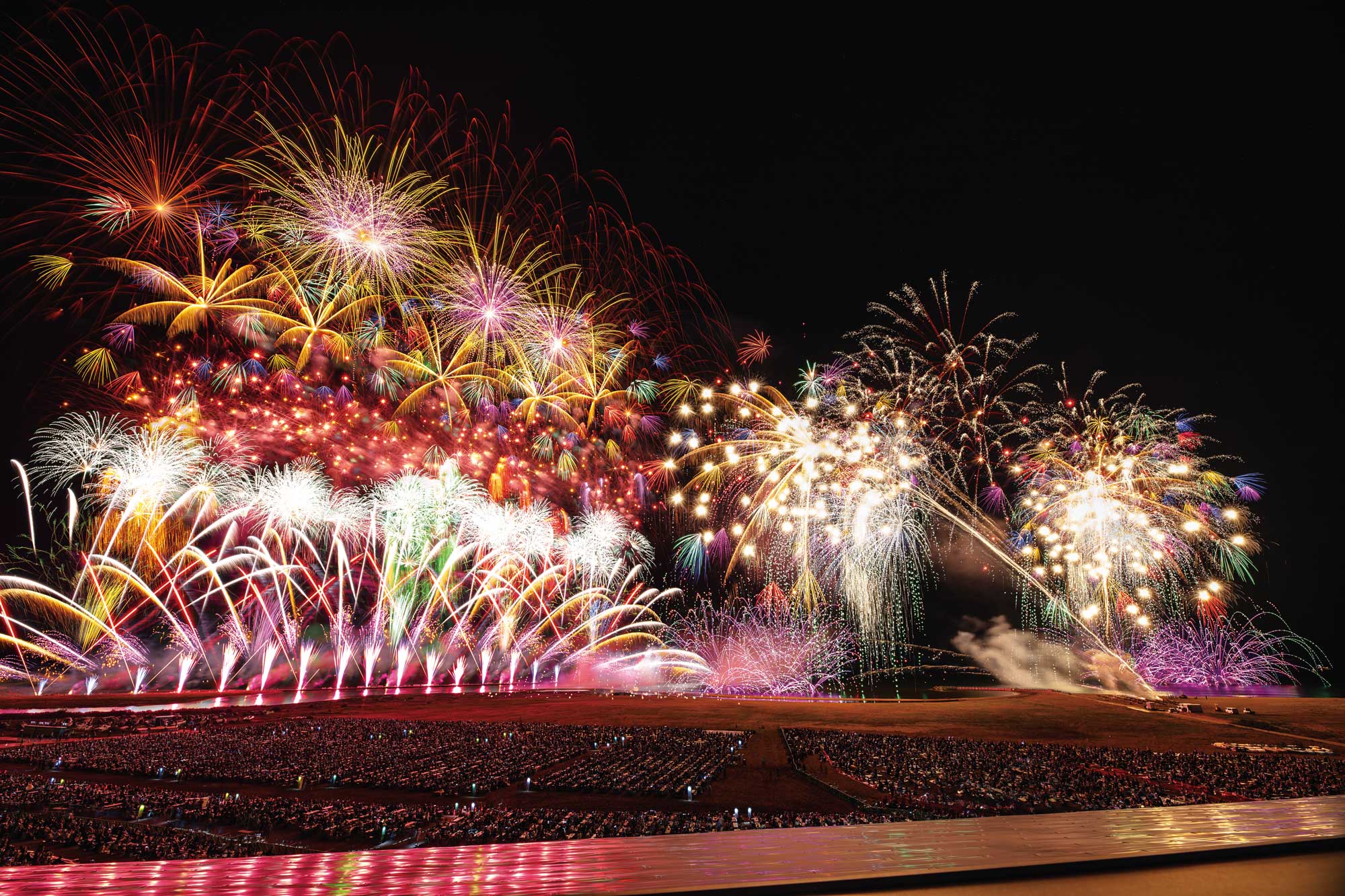 長岡花火遠目でしたがワイドに上がる花火は圧巻でした
