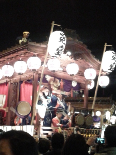 山車のひきあわせを見る前に四人で居酒屋へ♪