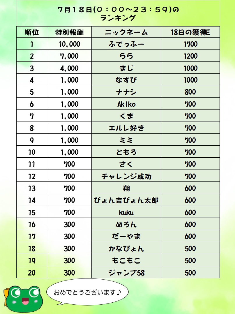 さくさんがいっぱいでしたが、なんと集計した際のニックネームは