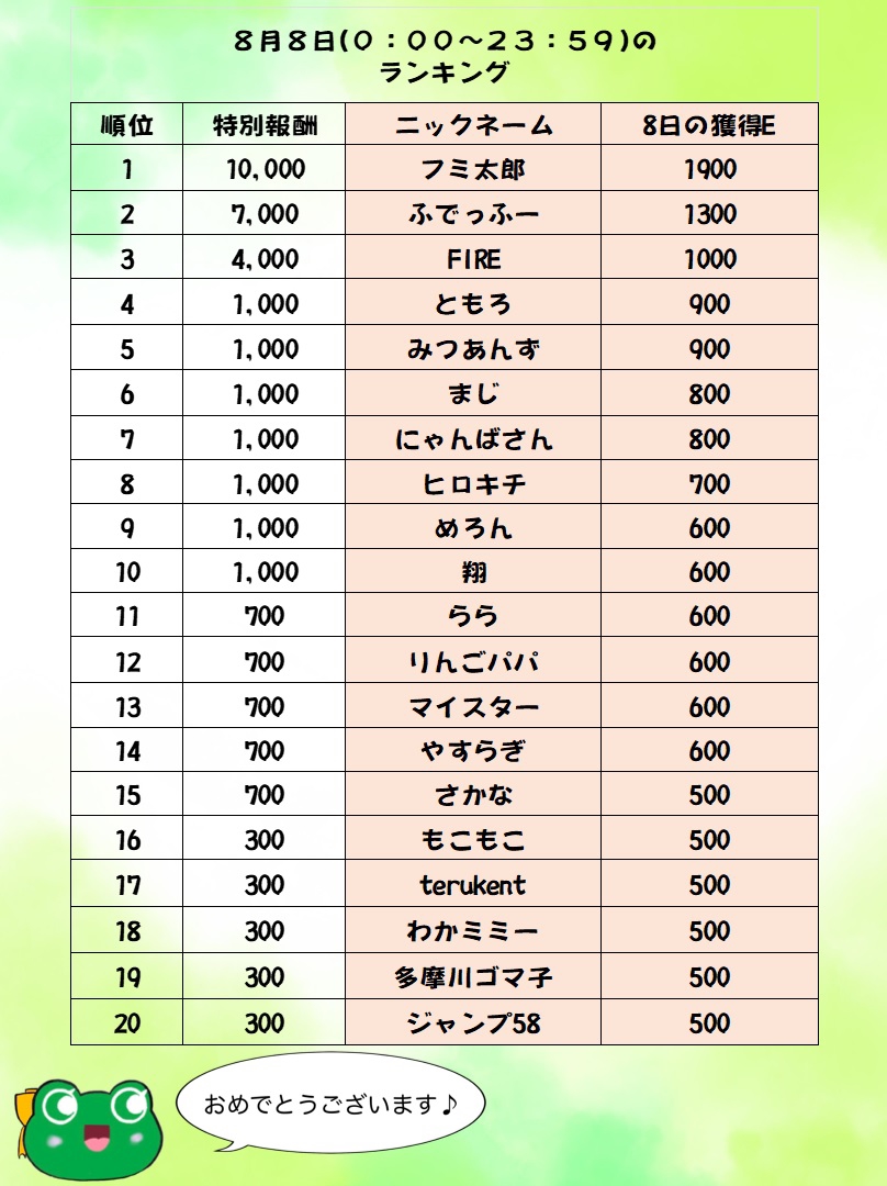 14日のランキングお仕事会員のみなさん こんばんは 月曜日ですね! 今週も暑さが続くようですが 頑張ってまいりましょう イーマイをする際は涼しい屋内で 休憩をはさみつつお仕事してくださいね。 さて、昨日のランキングをご紹介します。 8日から14日のランキングを一挙に確認したい方は 下記リンクからご覧くださいね 8月8日から14日までのランキングお仕事会員のみなさんこんばんは🐸先週8日から14日までのランキングを掲載いたします✨e-mi.amebaownd.com 今週もイーマイをよろしくお願い致します。
