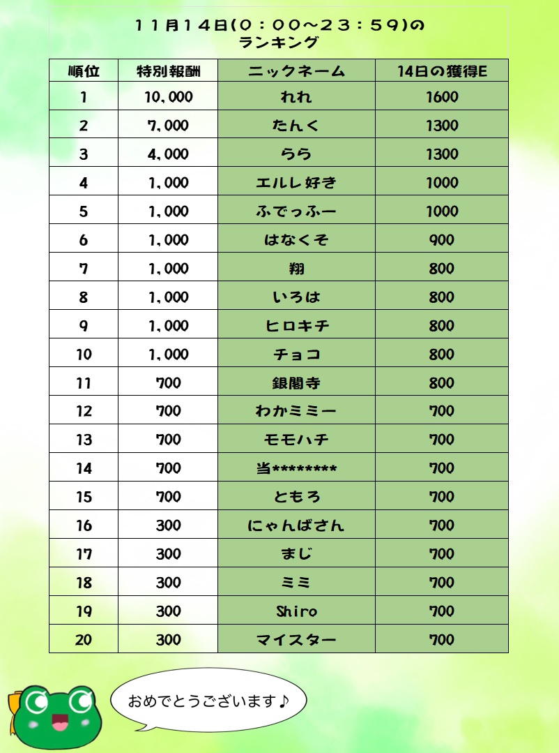 11月14日から20日までのランキングは下記リンクから