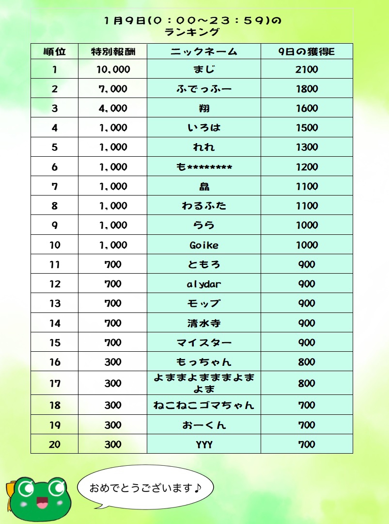 1月9日から1月15日のランキングは下記リンク先からご確認いただけます。