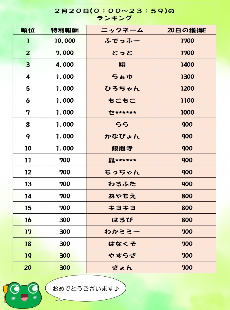 2月20日~26日までのランキングは下記からご確認いただけます。