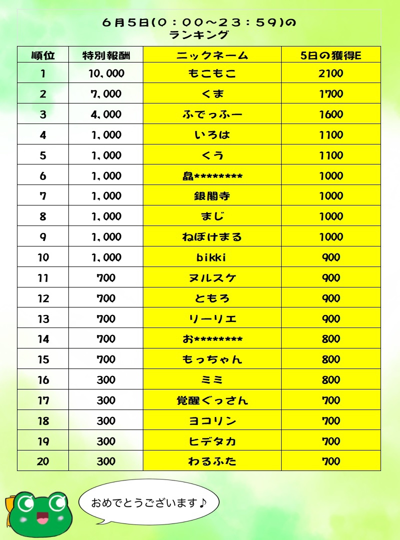 6月12日のランキングお仕事会員のみなさん こんばんは 今日は「いいみょうがの日」だそうです。 みょうがは6月が旬なんですね 確かにスーパーで見る頻度が多い気がします。 さて、昨日のランキングをご紹介します。 先週のランキングは下記からご確認いただけます。 6月5日~6月11日のランキングお仕事会員のみなさんこんばんは🐸梅雨ですね。体感温度が高く感じます。こういう時は水分補給と塩分補給そして涼しい環境作りが大切ですね。皆さん身体をご自愛ください。さて、先週のランキングをご紹介いたしますe-mi.amebaownd.com