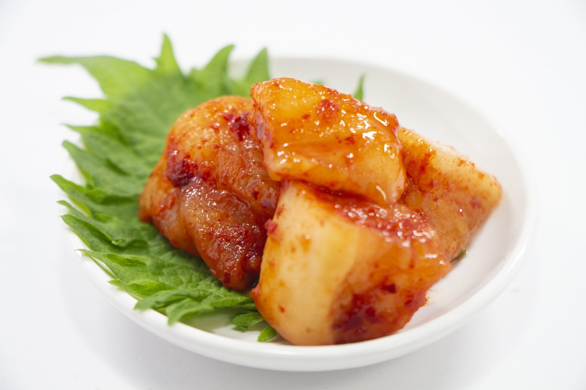 - 大根のキムチです。カクテキとも言います。大根をさいの目に切って作ります。