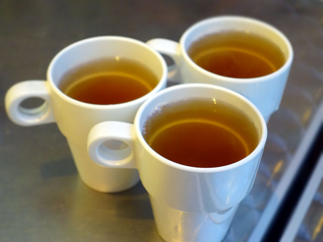 また三人分まとめ撮り。 最初から期待していないぶん、かすかに風味もあって白湯よりはずっとマシです。