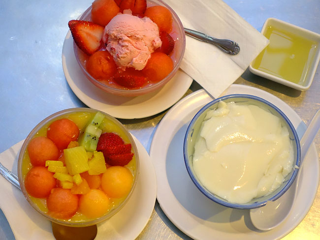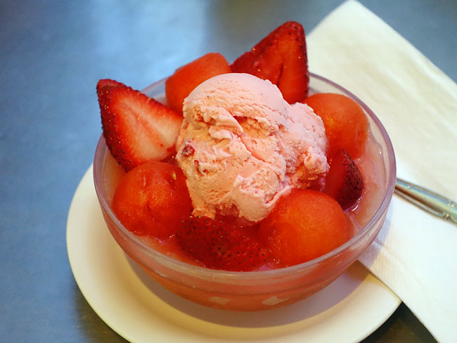 Fさん、あいかわらずご注文が細かくて、ハニーデューメロンがイヤだから西瓜に交換してもらっていました...。飾り付けから緑色が消えるからフォトジェニックでなくなるかと思ったら、キウイが乗っかってるから依然としてカラフル。