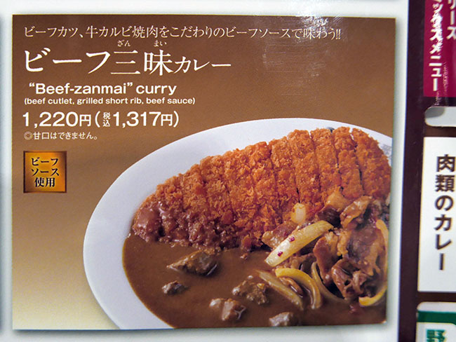 面倒臭いので、この「ビーフ三昧カレー」にしておきました。目的のビーフカツが乗ってるし。