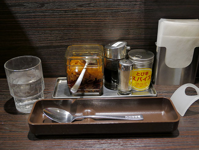 着色料を使わないためなのか色が変に見える福神漬けらしき物体と、よくカレーにソースをかける変態を高校や大学でも見かけたけど、あれってかなり普遍的らしく、ソースも常備されています。けっこういたれりつくせりみたい。
