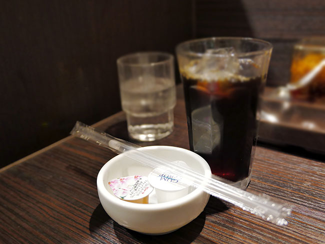 お飲み物はアイスコーシー。ガムシロップが普通に添付されてくるのを見て、また感動しました。
