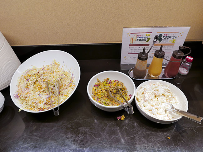サラダコーナー。見るからに「飼い葉」なものは置いておらず、コールスローとかポテトサラダ系でまとめてます。
