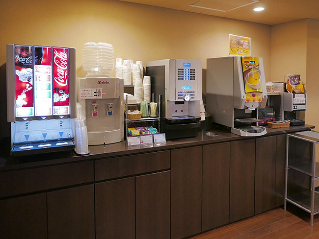 朝っぽらからコーラ飲むのって、アメリカ人みたい。他にはエスプレッソマシン、ジュースサーバに... 味噌汁マシン。