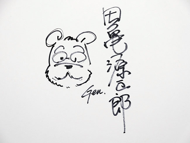 オチャメな田亀先生... サインと似顔絵を残してありました。