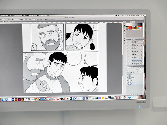 こんな一角です。原画、ネーム、下書き、Macintosh® へ取り込んで Adobe Photoshop® で仕上げるまで...。