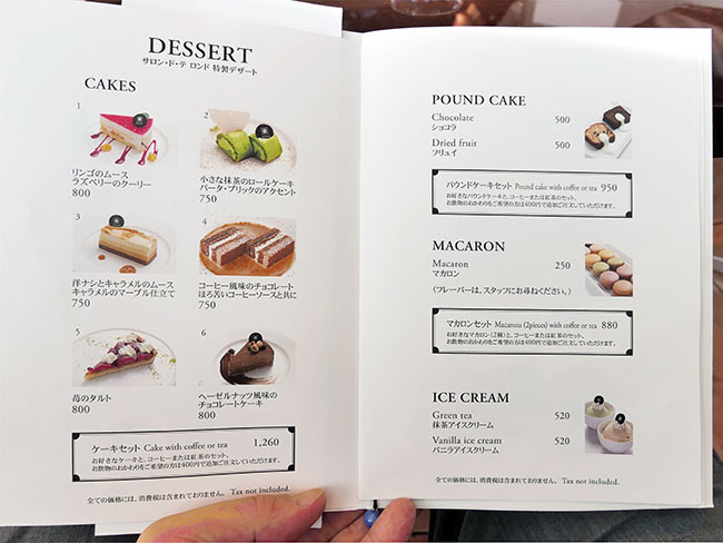 お茶といっしょに、なかなか美味しそうなケーキもいただけそうです。マカロンって1個250円だろうね...(怒)