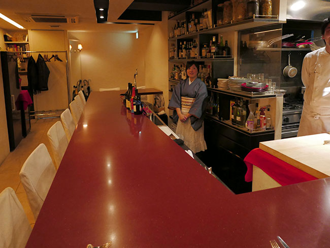 店内はこんな感じ。カウンター席で12~15名様くらいだけ収容できる、良質ワイン&お食事のお店です。