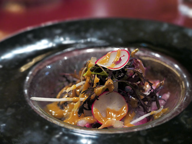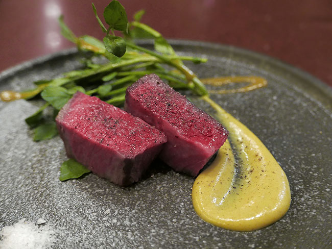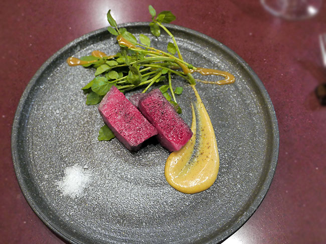 たいへんにクリエイティヴなお料理を出してくださるシェフの宮田さんが次に出してくださったのは... 寒ブリ。