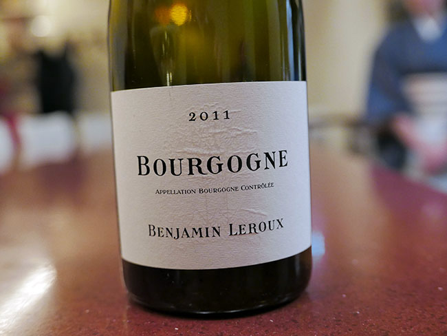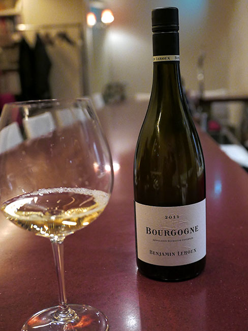Benjamin Leroux Bourgogne Blanc 2011 AOCを取っててこんな模造紙みたいに何の柄もないエチケットって珍しい。そしてアメリカ人はベンジャミン・ルロウって読むけど、正しくはバンジャマン・ルルーって読むんだよね...。ブルゴーニュの白ですから、冷涼な気候らしさを感じるシャルドネです。果実感は弱いものの酸のアタックがしっかりしているおかげで、いろいろなお食事にはあうと思います。気になって後で軽く調べたら、モントラチェットwの近所で穫れた葡萄だそうです。このタイプはスイスの先生が好きそうな仕上がりなので、最近洗脳された僕も好きになってます。