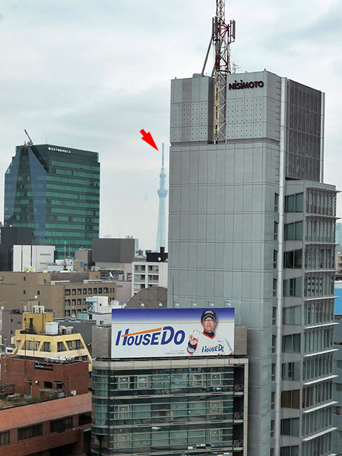 東京タワーが見える特等席なのを威張りたかったようですが... 僕、押上駅を頻繁に利用するアメリカ人だから。(笑)