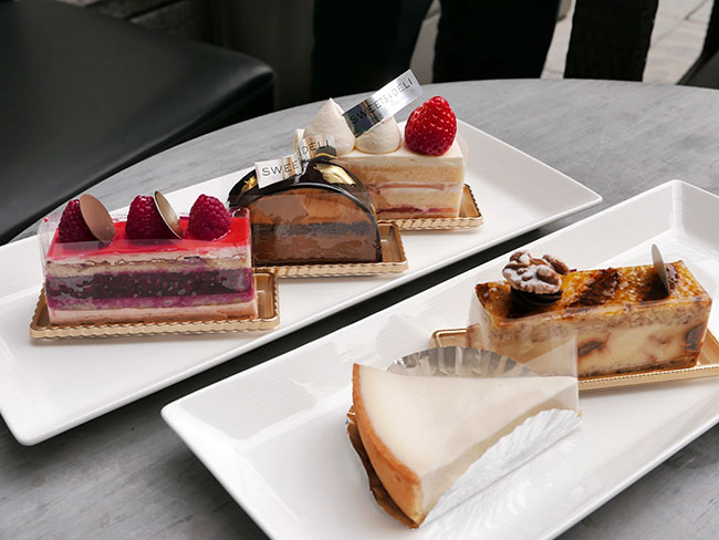 まだちょっと外気が冷えている時期だったので膝掛けまで用意してくださり、本日のケーキ各種を拝見しました。
