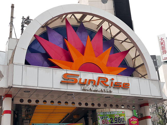 蒲田駅を西口側に降りると、こんな素敵にウニウニしたデザインの「サンライズ蒲田」というモールが...。