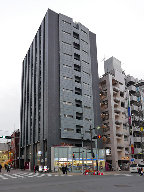 で、ここがホテルの入っているビル全景。(チェックイン後、わざわざ道を横断してはす向かい側から撮影)