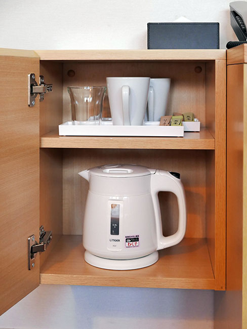 LAWSONから飲物を買い込んできたから全く使わなかったけど、お茶と湯沸かしポットがありました。
