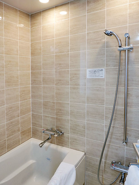 湯舟に頻繁に浸かる習慣が無いのと、人が使った小さな浴槽は好きくないのでシャワーで済ませたよ。