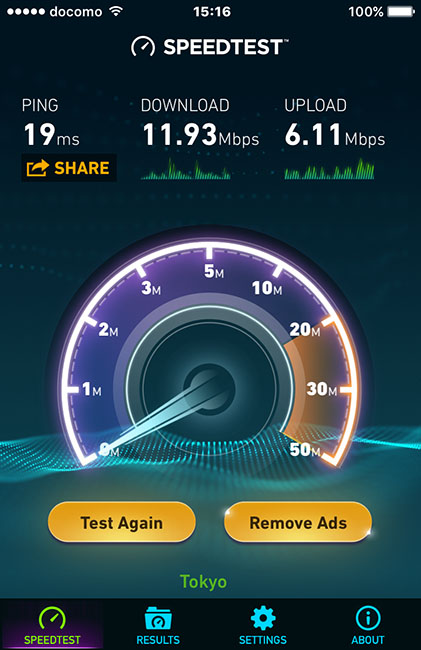 あ、あと、この宿の無料 Wi-Fi もチェックしたけど、角部屋なのにこんだけの速度が出てたよ。